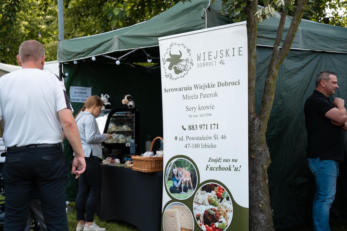 Für das leibliche Wohl sorgten lokale Produzenten. Die Käserei Wiejskie Dobroci aus Izbicko / Stubendorf bot eine Vielfalt von frischen und gereiften Käsesorten an. Ebenfalls vertreten war der Ziegenhof Kozi Dar aus Chudoba / Kudoba, geführt von Małgorzata und Roman Famuła. Sie präsentierten eine breite Palette an Ziegenkäseprodukten. Direkt daneben bot die Metzgerei Golomb aus Szczedrzyk / Sczedrzik traditionelle Wurst- und Fleischwaren an.