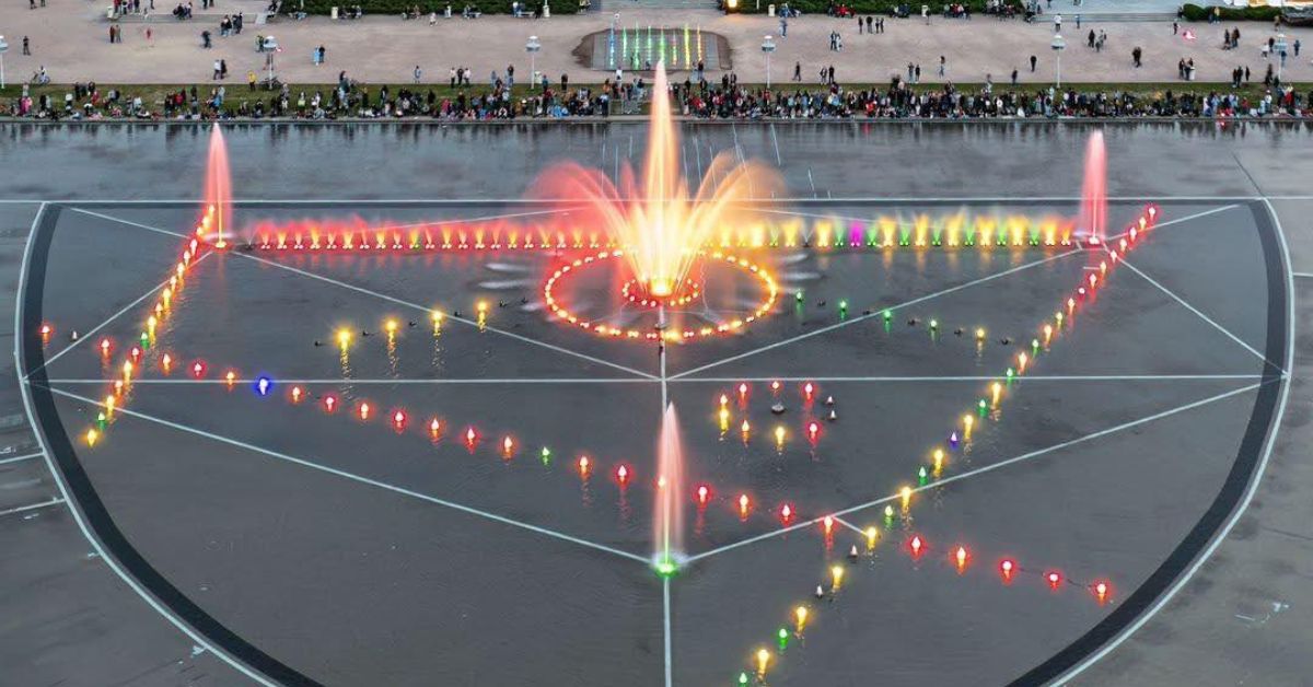 Zu den Springbrunnen gehören drei mit Wasser gefüllte Becken und ein sogenannter Trockenbrunnen, 367 Wasserdüsen (davon 227 digital gesteuert), 295 RGB-LED-Scheinwerfer, ein 15-W-RGB-Laser, ein Projektor und eine zentrale Steuereinheit.